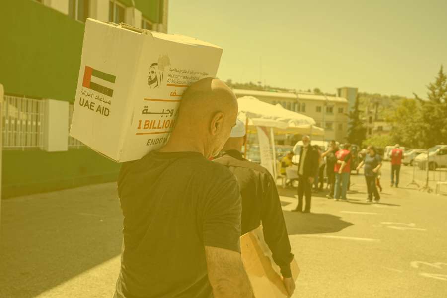 Our offerings include cleaning materials, bedding, blankets, school bags, hygiene products, candy, Lebanese mouna, and clothing.